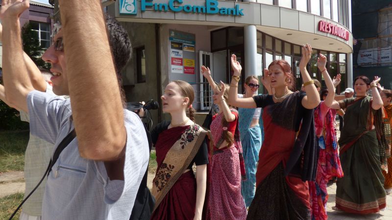 Вы идете по улице и вдруг обнаруживаете перед собой необычно разодетую группу танцующих и поющих Харе Кришна…молодых людей.