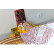 Киртан усиливался все преданные пытались хоть как-то послужить ей. Я подошла и села рядом , пытаясь нащупать пульс на ее руке, в этот момент кто-то позвал меня я выпустила ее руку, сконцентрировавшись на том что пытается сказать мне преданный. Вдруг я почувствовала, что кто-то сильно схватил мое запястье и дернул меня, и каково было мое удивление, когда я поняла что это Маша. Я подумала, что она хочет воды, и молча протянула ей шприц с водой Ганги. Смотря мне в глаза она твердо произнесла: Радхе Шьям! Рядом сидевщие преданные услышав это стали повтарять: Шьям Шьям, кто-то незамедлительно принес изображение Вриндаванских Радхе Шьям и изображение ее духовного учителя Шрилы Радханатхи Свами. Я повторила для тех преданных кто не слышал что она сказала, и увидела счастливые улыбки на их лицах. Кундалата д.д. принесла два Шалиграма которые все время находились на ее груди до момента оставления тела. Боль причиняла ей сильные беспокойства, но она не смотря на весь этот внешний дискомфорт повторяла: Шьям Шьям Рам Рам.