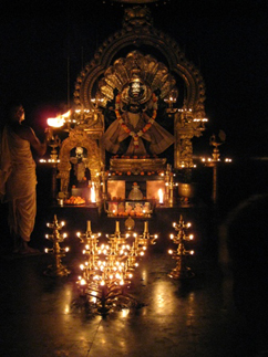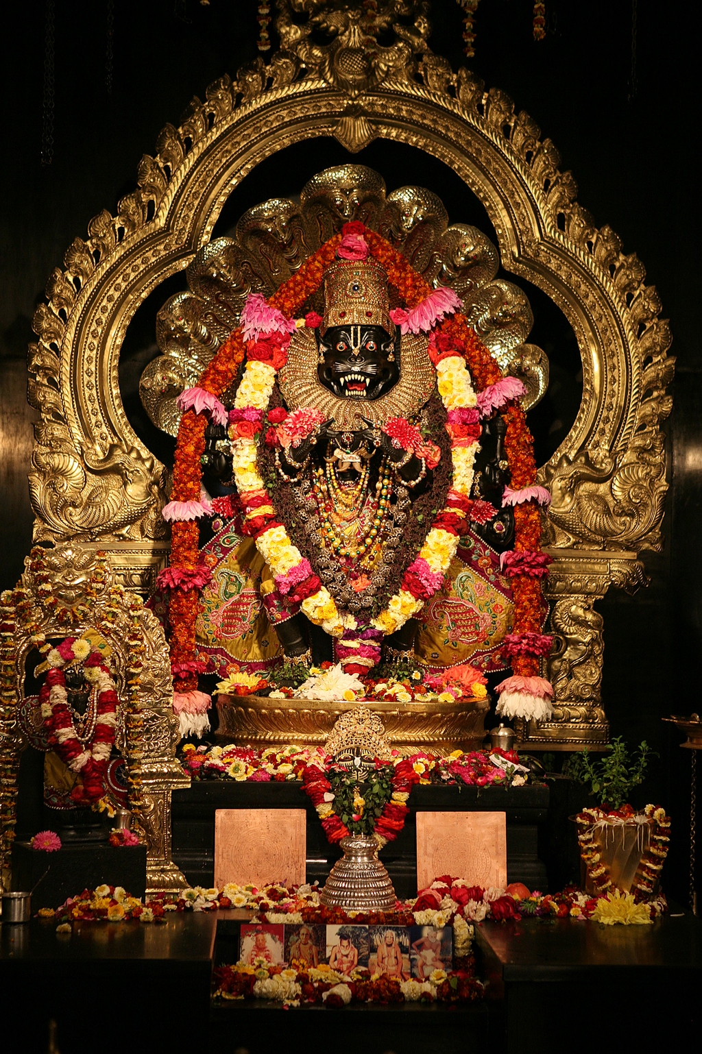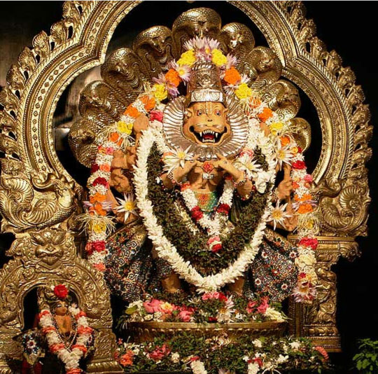 Однажды, когда проходила обычная пуджа Господу Нрисимхадеву, пуджаризаметил что из Его гирлянды выпал цветок. Пуджари спросил у посетителей,предлагал ли кто-нибудь особые молитвы Господу Нрисимхадеву. Посетителикоторые стояли впереди, ничего не ответили, но одна женщина сзади подошла сослезами на глазах. Она сказала: "Моя дочь вышла замуж четыре или пять леттому назад, а у нее нет детей. Родственники со стороны зятя считают этонеблагоприятным. Я молилась Нрисимхадеву, чтобы он помог ей в ее безысходнойситуации".
