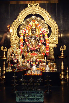 Затем его сон прервался и он проснулся. Он рассказал сон своему братуДжананивасу прабху. Слушая это Джананивас подумал некоторое время и ответил"О да, мы должны были начать Шалаграм джаладхам вчера (фестиваль, когда натуласи и Шалаграм в течении одного месяца капают воду), но мы не сделалиэто. Кажется, чтоГосподь Нрисимхадевачерез этот сон намекает, что мыдолжны немедленно начать джаладханам для нашегоНрисимха Шалаграма". История вторая: