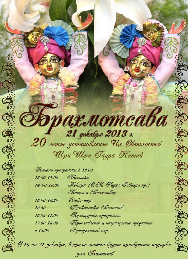 Великий святой Индии Шри Чайтанья Махапрабху (1486-1534) учил, что единственной целью человеческого существования является обретение чистой любви к Богу, и эта любовь - ключ к решению всех проблем человечества.