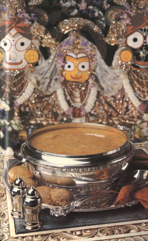 Любой, кому посчастливилось увидеть Кришну в форме Господа Джаганнатхи, никогда не забудет Его. Господу Джаганнатхе испокон веков поклоняются в индийском городе Джаганнатха-Пури. Имя Джаганнатха значит «Повелитель Вселенной». Эта форма Господа очень милостива и необыкновенно привлекательна - у Джаганнатхи огромные сияющие глаза и широкая улыбка. Джаганнатха-Пури чанне ки дал - любимое блюдо Господа Джаганнатхи, и во многих храмах Общества сознания Кришны преданные регулярно предлагают Ему этот суп. Как-то один из гостей, впервые попробовав этот суп, сказал, что теперь ему понятно, почему Господь Джаганнатха все время улыбается.