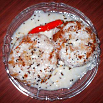 Откиньте замоченный дал на дуршлаг и затем смелите его в миксере с перцем, асафетидой, содой, 1 ч. л. соли и таким количеством воды, чтобы получилась однородная паста. Взбивайте смесь венчиком, пока она не станет такой легкой, что ее капля будет плавать в воде. Отставьте. Отложите 1/2 ч. л. соли, а оставшуюся растворите в теплой воде.