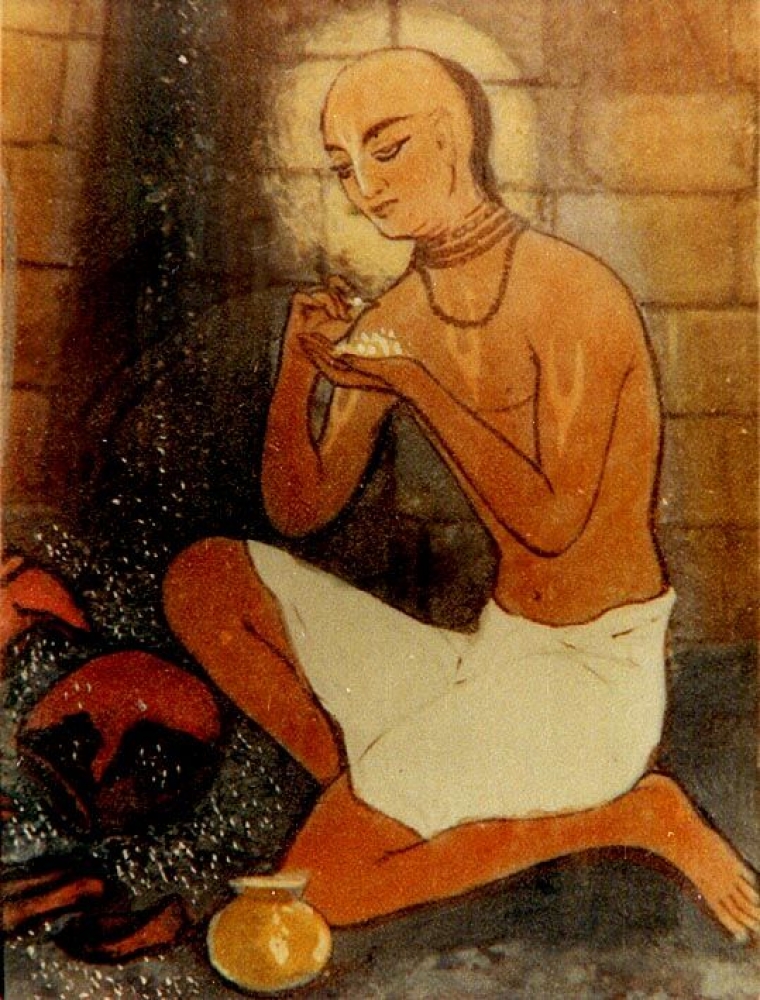 В глубоком почтении я склоняюсь перед шестью Госвами – Шри Рупой Госвами, Шри Санатаной Госвами, Шри Рагхунатхой Бхаттой Госвами, Шри Рагхунатхой дасом Госвами Шри Дживой Госвами и Шри Гопалой Бхаттой Госвами, которые отвергли любое общение со знатью, считая его бессмысленным. Чтобы спасти несчастные обусловленные души, они отреклись от всего, оставив себе лишь набедренные повязки. Однако, хотя они и ведут образ жизни нищих, они, всегда погружены в океан экстатической любви к Кришне и постоянно купаются в его волнах
