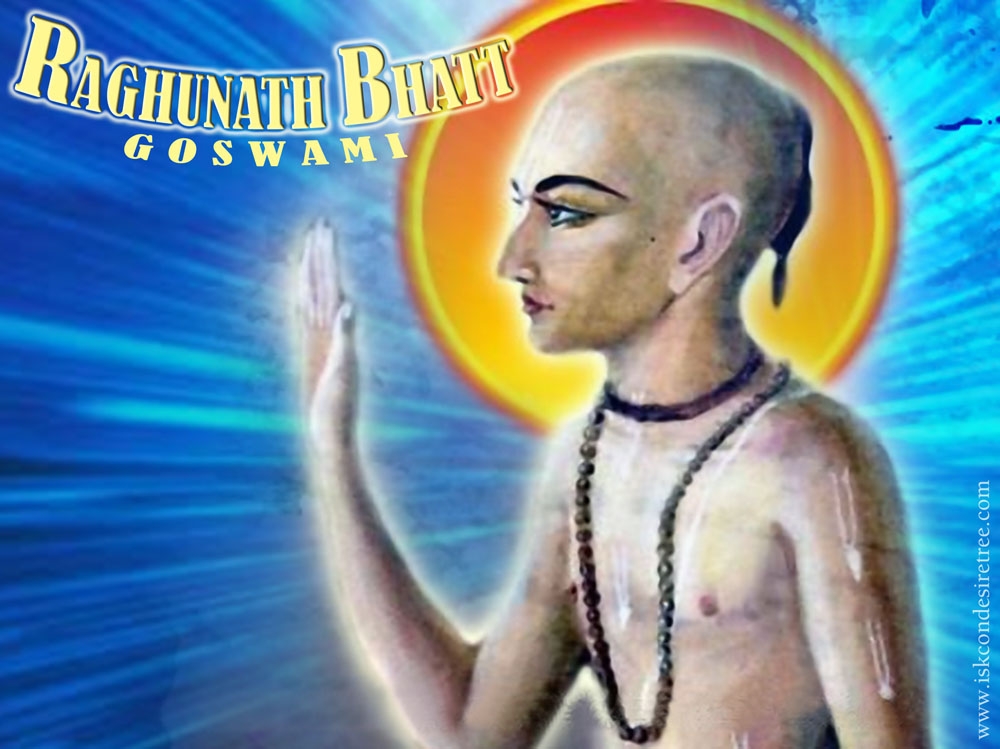 Рагхунатха Бхатта Госвами достал все украшения для Божества Говинды. Он никогда не говорил вздор и не разговаривал на мирские темы, а постоянно, двадцать четыре часа в сутки, слушал о Кришне. Он не мог слышать, как поносят вайшнава. Даже если и случалось нечто достойное критики, он обычно говорил, что поскольку все вайшнавы заняты служением Господу, он не собирается обращать внимания на их недостатки. Впоследствии Рагхунатха Бхатта Госвами жил рядом с Радха-кундой, в маленькой хижине. В Гаура-ганоддеша-дипике, стих 185, говорится, что Рагхунатха Бхатта Госвами прежде был Гопи по имени Рага-Манджари.