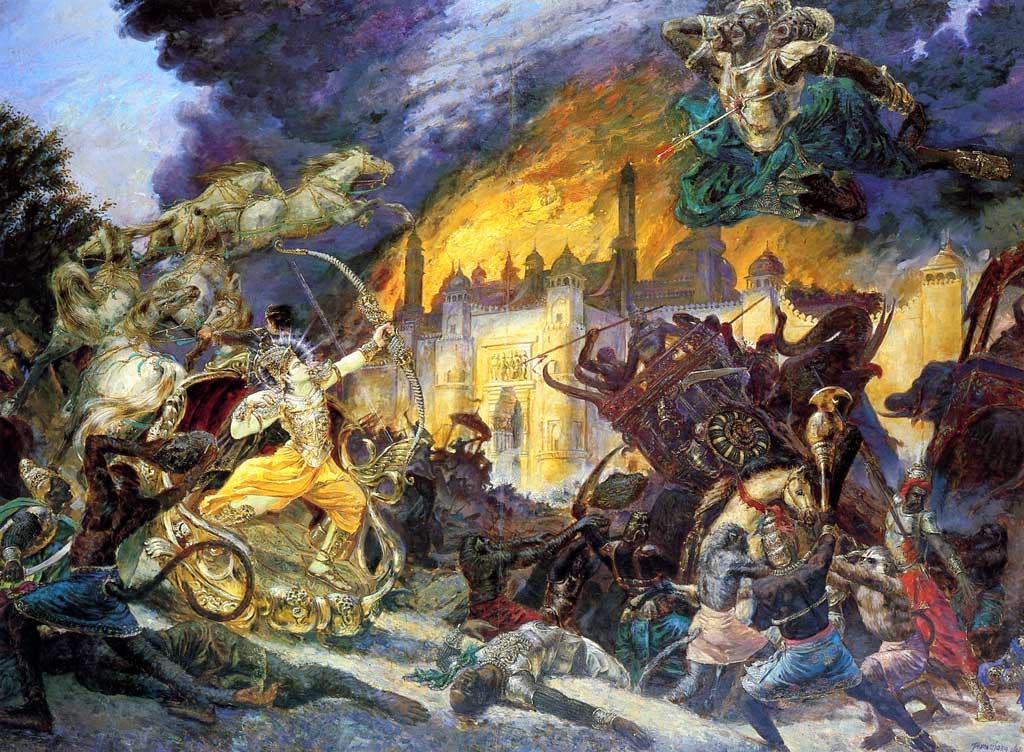 Дипавали также празднуется, чтобы отметить победу Рамы над Раваной, или добром над злом, о чем повествует Рамаяна. Рама возвращался домой в Айодхью спустя четырнадцать лет после ссылки и был коронован царем. Каждый дом в Айодхье был освещен, чтобы приветствовать Его. Иллюминация символизирует устранение духовной тьмы из страны и празднует Рам Раджью, правление Рамы, синоним совершенного правления.