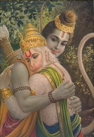 Позже Рама подружился с Сугривой, царем обезьян (1). Вместе они собрали большую армию обезьян и медведей, а также отправили Хануманджи на Шри Ланку, где он смог увидеть в ашоковом саду Джанаки, Ситу Деви. Он передал Ей послание Рамы и вернулся к Раме с посланием от Нее, таким образом совершив величайшее служение Всевышнему.