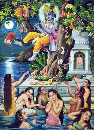 Кришна просто не давал им их одежду. Они должны были выйти из воды, и Кришна увидел их, полностью раздетыми, но по ведическиму стандарту, только муж может видеть жену в таком виде. Поэтому, Кришна фактически принял этих гопи, как Своих жен. В прежние времена, если мальчик оказался не в том месте, не в то время, и даже если он случайно видел, девочку обнаженной, они должны были пожениться.