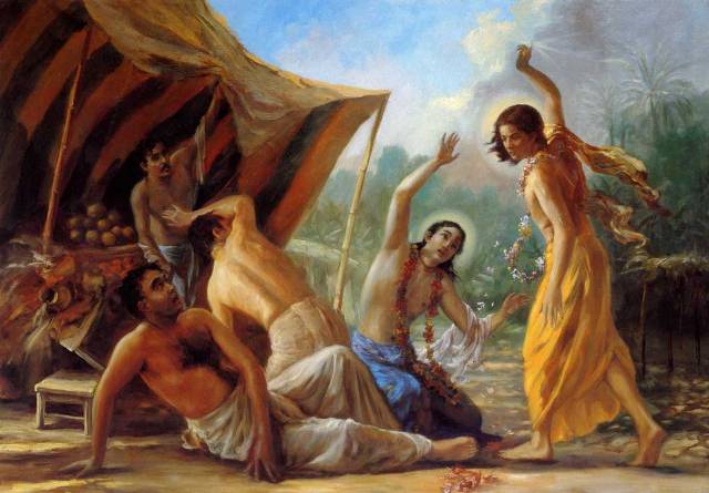 То же Он говорил и ворам: «Перестаньте грешить, повторяйте Святые Имена Господа, оставайтесь в обществе преданных и делитесь тем, что вы получили, с другими. Вы — цари разбойников, их тысячи, они уважают вас, используйте свою репутацию для блага других. Это бхакти».
