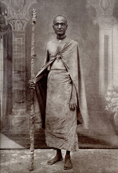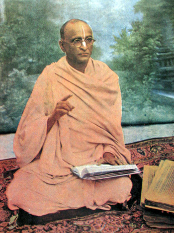 «Шрила Бхактисиддханта Сарасвати Тхакур, самый ученый из всех духовных учителей в линии гаудия вайшнавизма, ослепительно сияет в играх санкиртаны Шри Чайтаньи Махапрабху, освящая весь мир божественной вибрацией. Он освободил души этого мира от гигантской акулы имперсонализма. Он распространял нектар божественной любви к Шри Кришне также свободно, как и воду, утоляя жажду всех душ по наивысшему нектару. Он мой господин и учитель, и я вечно поклоняюсь его лотосным стопам».