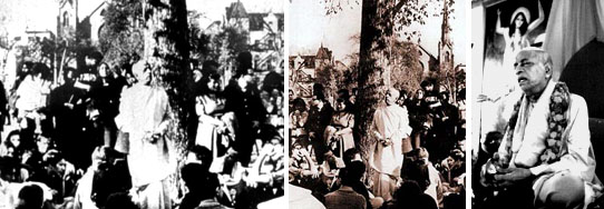 -Я приведу пример из жизни, показывающий, как можно поставить все с ног на голову. Вот председатель нашего общества, г-н Голдсмит… Он знает, что благодаря умению толковать законы опытный юрист может многого добиться. Когда я жил в Калькутте, правительство издало закон о налогообложении, но один опытный юрист так истолковал этот закон, что правительству пришлось полностью его пересматривать - действиями этого юриста их планы потерпели крах. Итак, мы не хотим сорвать план Кришны, для осуществления которого была рассказана «Бхагавад-гита». Но некоторые самозванцы пытаются его испортить. Поэтому их действия незаконны. Да, г-н Голдсмит, вы можете задать вопрос.