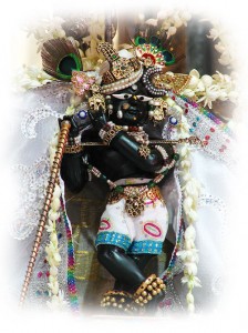 На следующее утро он искупался в Ямуне. Когда Гопала Бхатта пошел будить свои шалаграмы и открыл корзину, он увидел среди шалаграмов нечто божественное. Один из шалаграм-шил стал безукоризненным божеством Кришны, форма его изгибалась в двух местах, Он стоял и был очень красив. При виде такой несказанной красоты божества счастье Гопала Бхатты стало огромным океаном, в котором он нырял и плавал. Предложив божеству множество дандаватов, он начал возносить Господу различные гимны и молитвы.