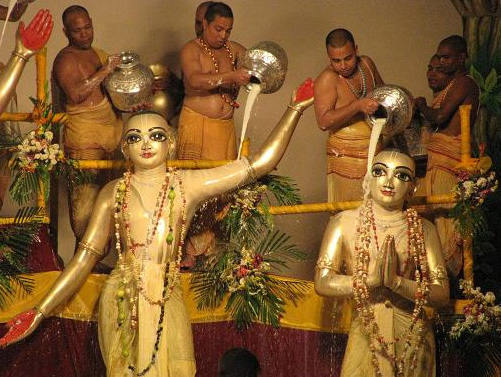 Встретившись с Шри Адвайтой Ачарьей Прабху, они начали изучать «Бхагаватам» и молить о воплощении Всевышнего Господа. Зачем они это делали? Потому что лишь аватара Кришны мог заронить вайшнавизм в сердца отъявленных атеистов, логиков и гордых пандитов, заполнивших улицы Надии.
