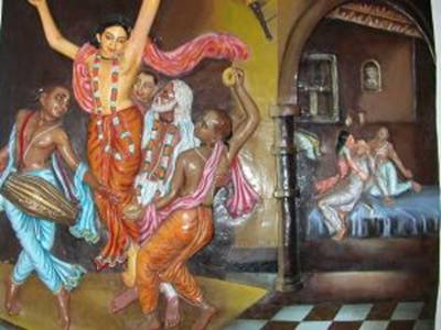 Вриндавана дас Тхакур писал: «Чтобы пробудить спящие души века Кали и распространить нектар святого имени Кришны, пришел Шри Чайтанья Махапрабху. Когда Он пришел, мриданги и караталы зазвучали словно громовые раскаты. Погруженный в настроение экстатической любви и восклицая: «Хари Бол! Хари Бол!», Шри Гауранга попросил всех без исключения повторять святые имена Кришны. Воздев свои золотистые руки к небу, Господь Гаура Хари начал танцевать в экстазе. В это самое время Вакрешвара Пандит и другие преданные присоединились к танцу Господа» («Чайтанья-Бхагавата»).