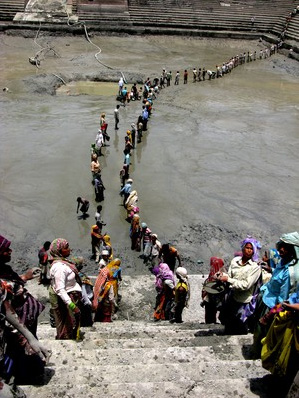 Сегодня вечером и ночью на Радха-кунде большой Праздник, поскольку Радха-кунда появилась в полночь. Сотни и тысячи людей приезжают туда в этот день и принимают там омовение, обходят Радха-кунду, возносят Ей свои молитвы. Когда мы говорим о Радха-кунде или приближаемся к Ней, мы должны помнить о своём положении, о своём реальном адхикаре. Можем ли мы попасть в настоящую Радха-кунду?..